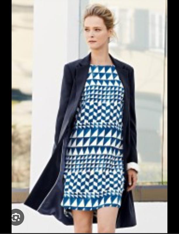 Стильное платье в геометрический принт Next Новая, но без бумажной этикетки, остался только шнурок с пломбой Сток, может иметь запах обработки, пойдет после стирки Очень красивый принт, треугольники неравномерно украшены, будто вручную раскрашенные акварелью Стильный лаконичный крой, низ по бокам немного закруглен, перед чуть короче На подкладе Сзади длинная молния Качество безупречно Можно носить и в офис, и на торжественные события, и вообще куда угодно Размер 14 Длина 86см, плечи 41,5см, под руками 51см, ПОТ 50см, ПОБ 54см