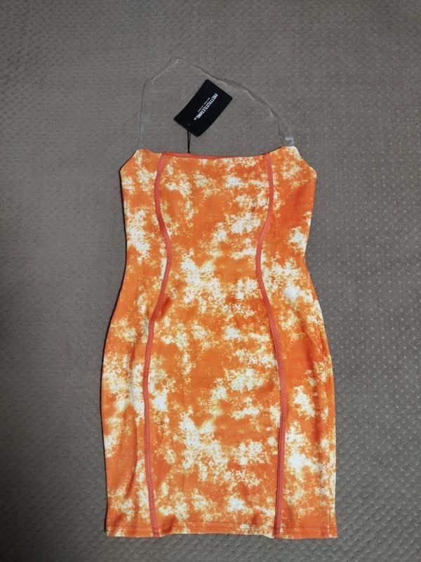 Это женское платье (мини) от бренда PrettyLittleThing оранжевого цвета. Особенности: Платье короткое, облегающее силуэта, без рукавов. Имеет прозрачные бретельки. Подходит для вечернего, праздничного и романтичного стилей (коктейль). Принт: Абстракция. Сезонность: Весна, Лето. Состав: Полиэстер 95%, Эластан 5%. Размер: S (Украинский 44, маркировка UK28 Подробные Замеры (по изделию и по фигуре): По изделию (полуобхват и длина): Длина изделия: 62 см ПОТ (Полуобхват талии): 32 см По фигуре (обхват, ориентировочно): ОГ (Обхват груди): 86 см ОТ (Обхват талии): 68 см ОС (Обхват стегон): 94 см Артикул: ПН21634.