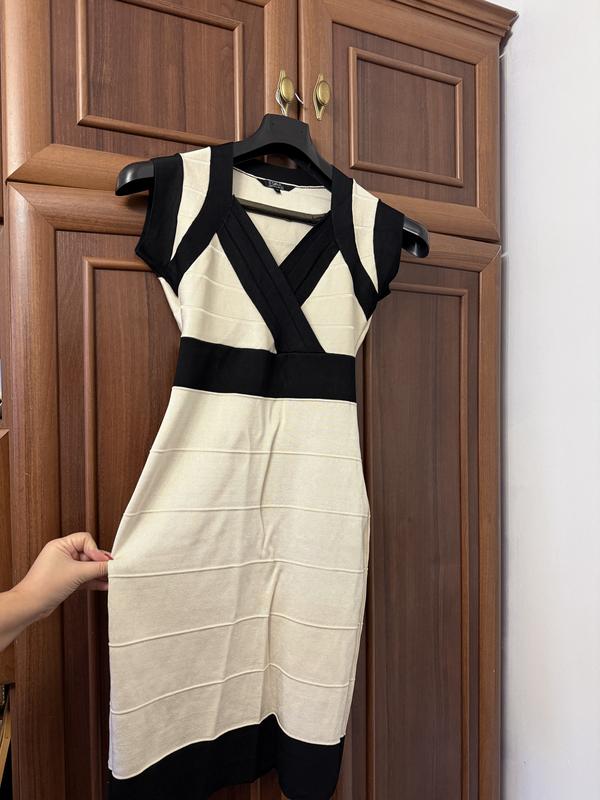 Сексуальна та елегантна бандажна сукня, яка ідеально моделює фігуру! Щільний, еластичний матеріал працює як корсет, створюючи силует "пісочний годинник". Контрастні чорні вставки візуально звужують талію та підкреслюють декольте. Заміри: • Довжина: 98 см • ОГ: 74 см (тягнеться до 84 см) • Талія: 64 см (тягнеться до 78 см) • Стегна: 74 см (тягнеться до 90 см) Сукня ідеально підійде на розмір S-M. Стан: Відмінний.