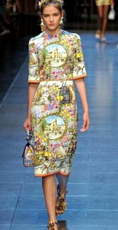 Жаккардовое платье с принтом, вдохновленным Италией, в стиле, напоминающем эстетику Dolce & Gabbana. Жаккардовая мини-платье в стиле Dolce & Gabbana из коллекции Sprint Summer 2016 украшена вышивкой "Италия — моя единственная любовь", имеет короткие рукава и круглый вырез. Материал: Хлопковая смесь. Это платье в итальянском стиле, визуально напоминающее коллекции модного дома Dolce & Gabbana с характерными сицилийскими и архитектурными принтами. Подобные платья часто вдохновлены летними пейзажами Италии. Информация о стиле Дизайн: Платье имеет яркий цветочный и архитектурный принт с изображением зданий в круглых рамках, красным поясом и надписью "I love Italy" по подолу. Бренд: Хотя дизайн напоминает коллекции Dolce & Gabbana (в частности, весна-лето 2016 года), в тексте на платье также присутствует надпись "Clove dyismyl" или похожий бренд. Вероятно, это изделие вдохновлено оригинальным дизайном. Наличие лейбла "HONG YUN BIRD HOUSE" на платье с принтом в стиле Dolce & Gabbana, указывает на то, что это реплика известного итальянского дома моды. ширина плечей = 36 НОГ = 46 НОТ = 38 НОС =48 Длина платья = 97 Длина рукава = 33 Сзади спинка застегивается на молнию. Все платье на хлопковой подкладке.