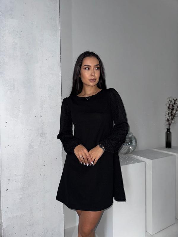 ‼️ТЕРМИН ОТПРАВКИ 2-5 РАБОЧЫХ ДНЕЙ!!️ФОТО РЕАЛ ‼️ Сукня Ткань: креп дайвинг, люрекс Размер: 42-44, 46-48, 50-52, 54-56 Цвет: черный Свободный силуэт из премиального креп-дайвинга дарит комфорт и красиво ложится на фигуру, скрывая все лишнее. Главный акцент - рукава с люрексом, нежно мерцающие при движении, создает эффект дорогого вечернего лука без перегрузки. Модель МL173