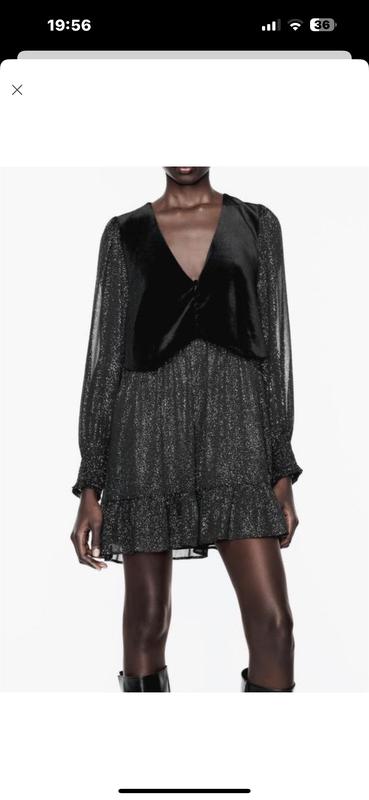 Вечірня святкова сукня. Шифон і велюр. Виглядає дуже цікаво, як імітація сукні і жилетки. Довжина міні, розмір М, але реально на С. Замовляла з закордону за 2700.