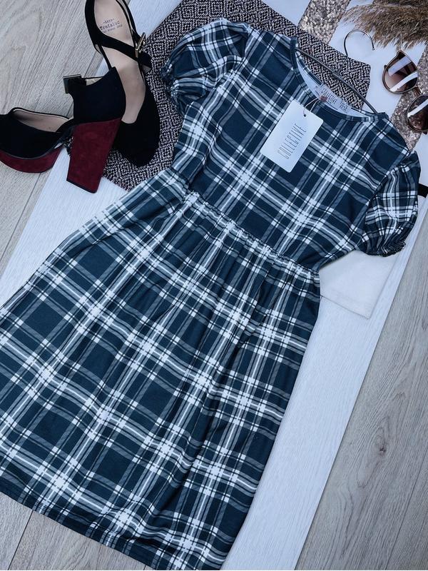 ✨Картата коротка сукня Street Collective Розмір:по бірці-L,буде і на М Стан:нова,з біркою. Склад:95%поліестер,5%еластан. Особливості:картата коротка сукня кльош з завищеною талією.Рукава ліхтарики. ФОТО НА ТІЛІ НЕ РОБЛЮ! Заміри(від шва до шва): Рукав-17; ПОГ-41,тягнеться до 55; Півобхват талії-39,тягнеться до 54; Півобхват стегон-54; Довжина-85; По низу-57