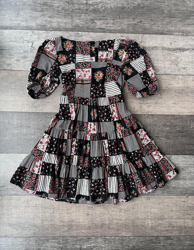 Сукня печворк міні з квадратним вирізом рукавами-ліхтариками ґудзики на спині urban outfit...