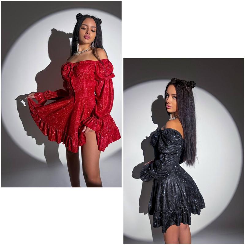 Фото реал😍 Блестящие и мерцающие люрексовые платья с блестками ✨ Представлены в такой палитре цветов- черный, мокко (хамелеон) электричество, красный, бордо (хамелеон) Мод: 655 ▪️Ткань: люрекс (поленочное сияние) ▪️Цвета: мокко (хамелеон), электрик, черный, красный, бордовый (хамелеон) ▪️Размеры: 42-44, 46-48 ▪️Отличное качество ▪️Спинка платья на потайной молнии. Плечики можно приспустить.