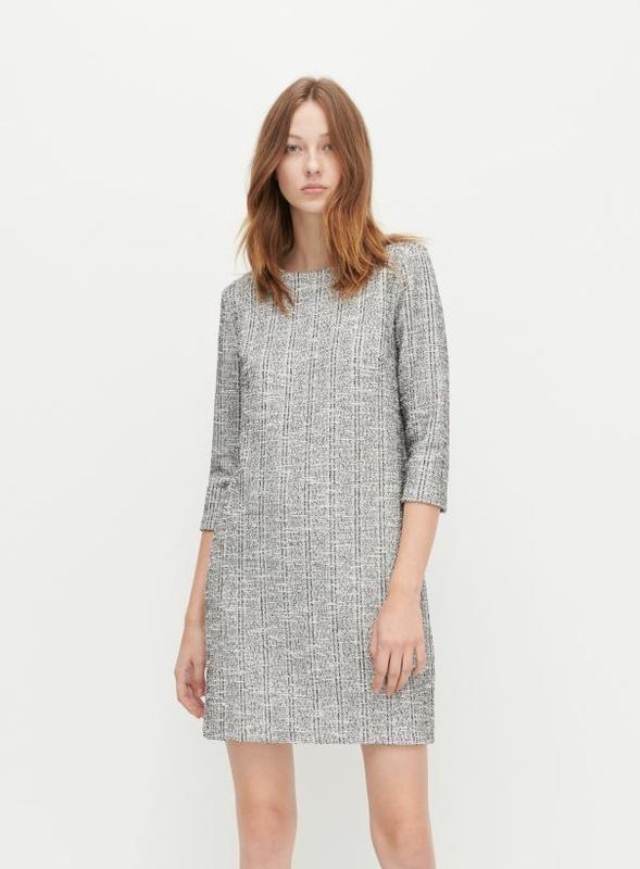 Нова жіноча сукня Reserved (модель твідового плетіння в чорно-білу клітинку). Класичний прямий крій, рукав 3/4. Ідеальний варіант для офісу чи стильного повсякденного образу. Розмір на бірці XS, сяде і на S Заміри: плечі 35 см, рукав 43 см пахви 45 см стегна 46 см довжина 87 см Склад тканини: поліестр/бавовна