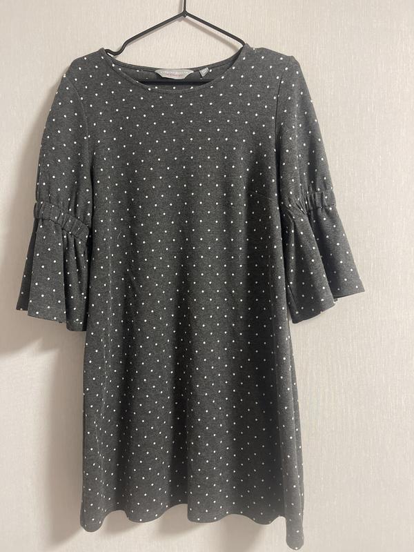 Трикотажна сукня до коліна , легенька трапеція. Трьохчвертний рукав.