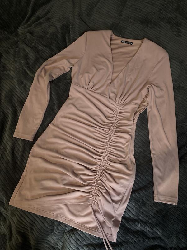 Нова сукня на затяжку бежево-пудрового кольору. Виглядає дорого та стильно. Збоку є замочок. Скриває всі недоліки і робить гарну фігуру. Всі заміри на фото.