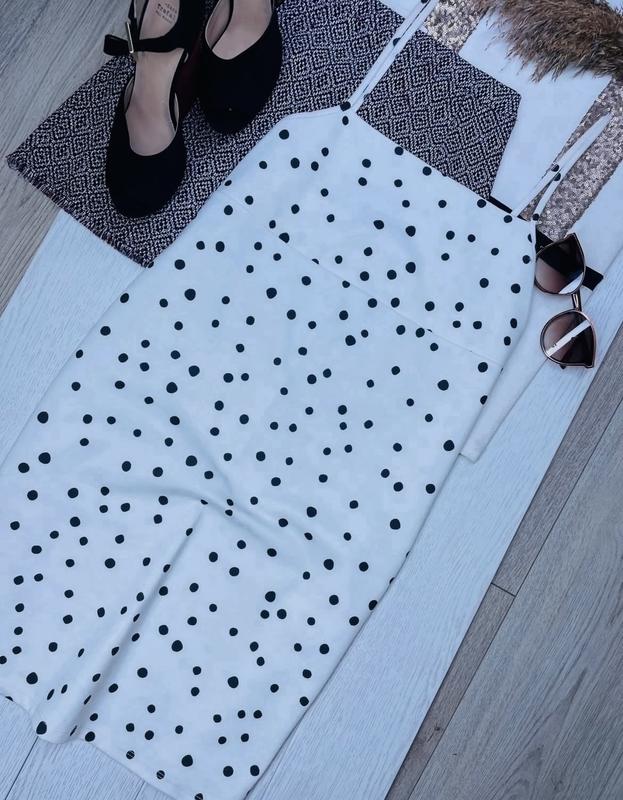 ✨Біла сукня трапеція Zara на тонких бретелях Розмір:L Стан:5/5. Склад:бірка зрізана.Гладенький трикотаж. Особливості:коротка сукня трапеція в горох. ФОТО НА ТІЛІ НЕ РОБЛЮ! Заміри(від шва до шва): ПОГ-45,тягнеться до 57; Півобхват талії-50; Півобхват стегон-55; Довжина-88; По низу-60