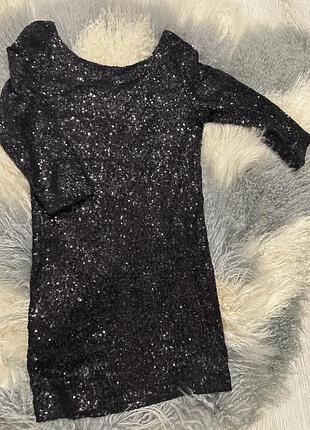 Повністю вкрита блискучими паєтками. Ккоротка вечірня сукня чорного кольору з пайєтками, розмір S Стан Ідеальний Ціна 350грн