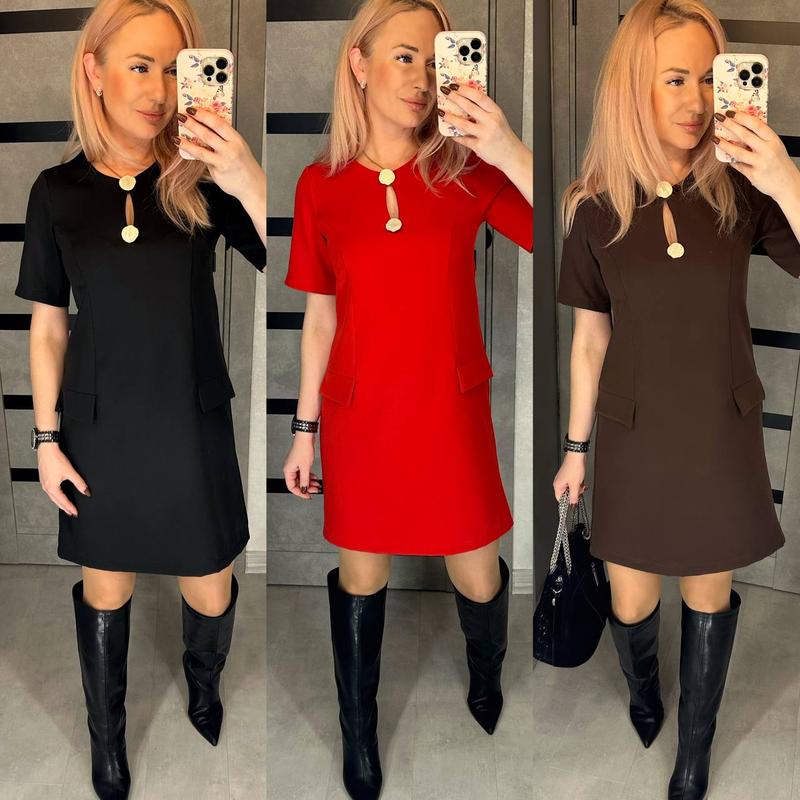Новинка 🫣 Сукня Модель 949 Тканина: костюмка Размеры: 42-44, 46-48,50-52 Цвета: черный, красный, шоколад Сзади на потайной молнии Цена : 650 грн 💥