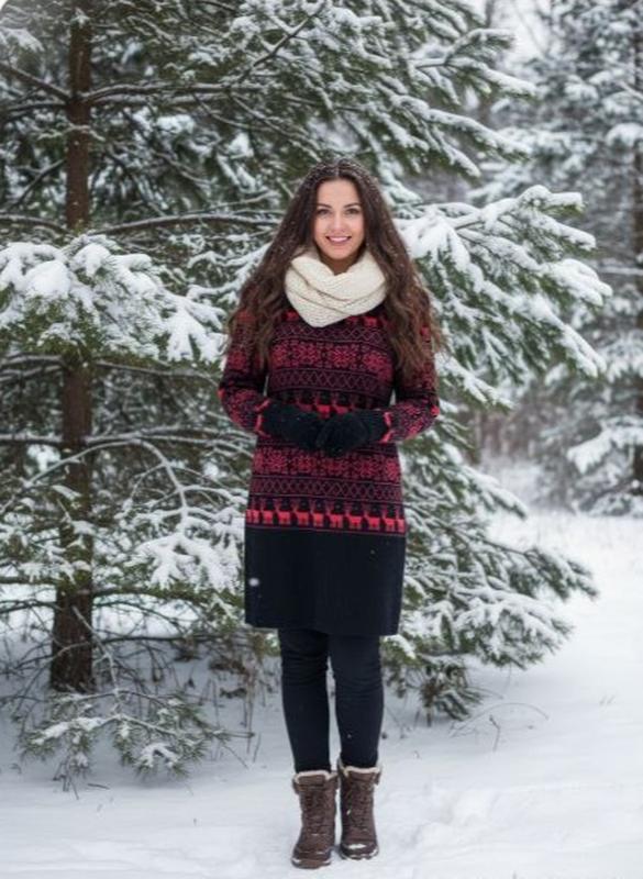 Теплое платье с красивым новогодним рисунком, украшенное камушками, которые все на городе, хорошее качество и отличное состояние.