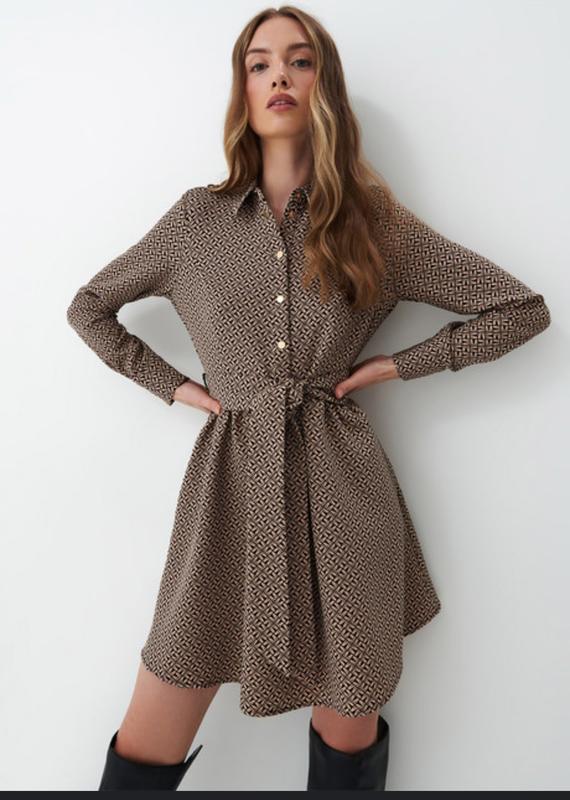 Стильна сукня Mohito, демісезон, коричнева Продам елегантну та зручну сукню від бренду Mohito. Стан відмінний, без пошкоджень та слідів носіння. Сукня універсальна, підходить як для повсякденних образів, так і для офісу чи виходу. Характеристики: • Бренд: Mohito • Колір: коричневий • Довжина: міні • Сезон: демісезон • Фасон: кльош, сукня-сорочка • Крій: приталений • Рукав: довгий • Комір: відкладний • Матеріал: 88% поліестер, 12% еластан • Фактура: гладка • Візерунок: геометричний • Застібка: на ґудзиках • Кишені: без кишень Переваги сукні: • гарно підкреслює фігуру завдяки приталеному крою • приємна до тіла, тканина еластична та комфортна • універсальна модель, пасує до черевиків, кедів та підборів • не мнеться та добре тримає форму