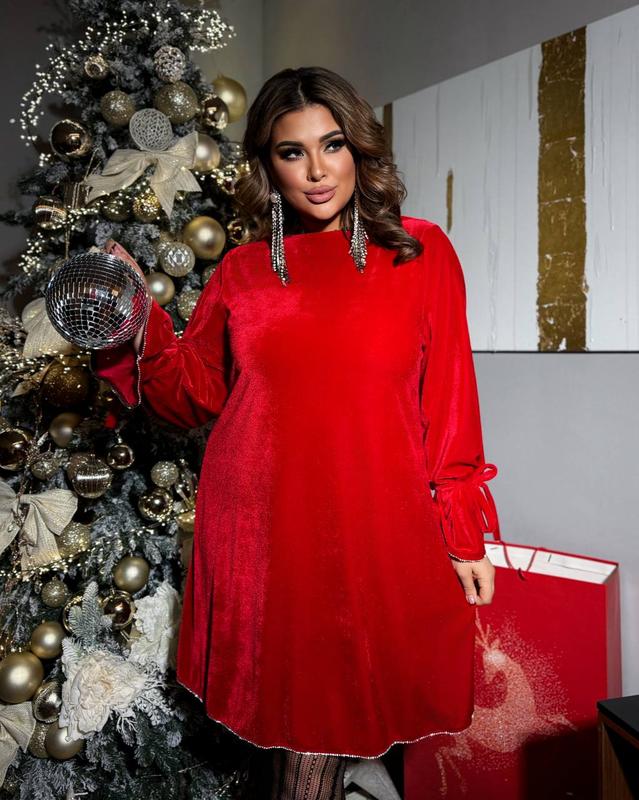 💫Новинка❤️🔥 Батальное бархатное платье с камушками💕 275 ✅Тканина: оксамит ✅Цвета: шоколад, красный, черный ✅Размеры: 50-52, 54-56,58-60 💸Цена: 1.035 грн 🔥 Бархатное платье прямого силуэта с эффектной отделкой Рукава и край подола отделаны блестящими камешками, что добавляет образу праздничности и роскоши. Длинные рукава с объемными манжетами создают утонченный акцент. Мягкий бархат приятный к телу и отлично держит форму Замеры ⬇️ ⬇️ ⬇️ ▪️50/52 0Г - 112 см ▪️54/56 0Г - 120 см ▪️58/60 0Г - 128 см Длина платья: 95 см