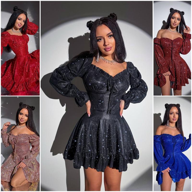 Фото реал😍 Блестящие и мерцающие люрексовые платья с блестками ✨ Мод: 655 ▪️Ткань: люрекс (поленочное сияние) ▪️Цвета: мокко (хамелеон), электрик, черный, красный, бордовый (хамелеон) ▪️Размеры: 42-44, 46-48 ▪️Отличное качество ▪️Спинка платья на потайной молнии. Плечики можно приспустить.