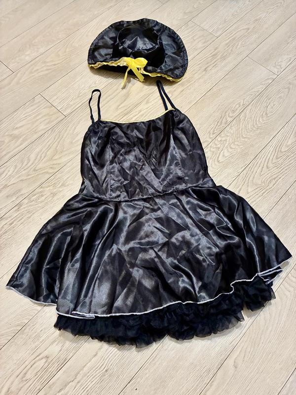 Атласна чорна коротка сукня з капелюхом у вікторіанської стилі для рольових ігор р 12