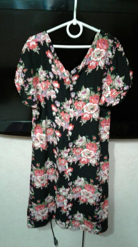 платье штапель яркий цветочный принт рукав на резиночке сзади молния