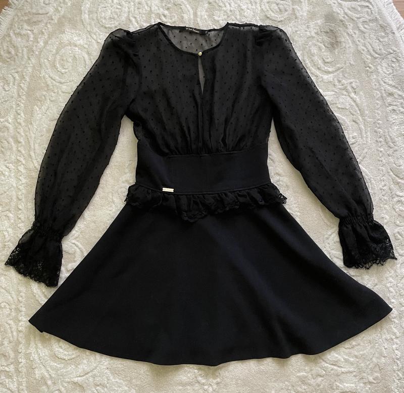 Продам неймовірно жіночну чорну сукню бренду V Les Femmes. Ідеальний варіант для вечірнього виходу, побачення чи свята. Виглядає дорого та витончено. Особливості: • Верх: Напівпрозорий шифон у дрібний горошок (дуже модний тренд). • Крій: Приталений силует з широким поясом-корсетом, який гарно підкреслює талію. • Деталі: Ніжна баска з мереживом на талії та мереживні манжети на рукавах. • Розмір: Орієнтовно S-M (тканина трохи тягнеться, сідає по фігурі). Сукня в ідеальному стані. Одягнена кілька разів. Дуже ефектна річ, яка не потребує зайвих аксесуарів.