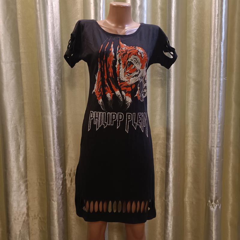 Очень красивое летнее платье Philipp Plein . Размер 44-46. Состав хлопок с эластаном. шикарный рисунок из страз.