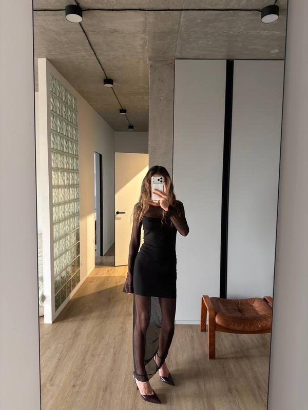 Сукня🥰 Мод: 1432-143 Колір: чорний, молочний Розмір: S- М, M- L Тканина: Сітка + віскоза Ціна- 799 грн🔥 Груди : 40/ 42 см ( + 6 см ) Талія : 32/ 34 см ( + 6 см ) Стегна : 42 є/ 45 см ( + 6 см ) Довжина рукава : 71 см Довжина виробу : 140 см