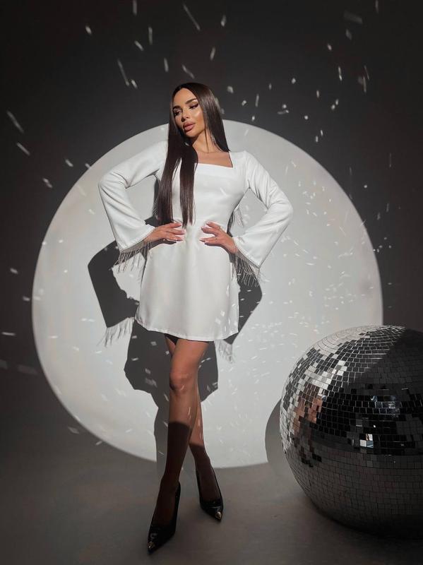 Хіт продажів 🔥 Модель 5601 Жіноча сукня Розмірний ряд S,M,L,XL Тканина костюмна Колір чорний та молоко Дуже гарна та нарядна сукня, з стильними у цьому сезоні підвісками по рукавам та спинці Застібається верх на ґудзики, по спинці блискавка Супер якість Ціна 1050 грн