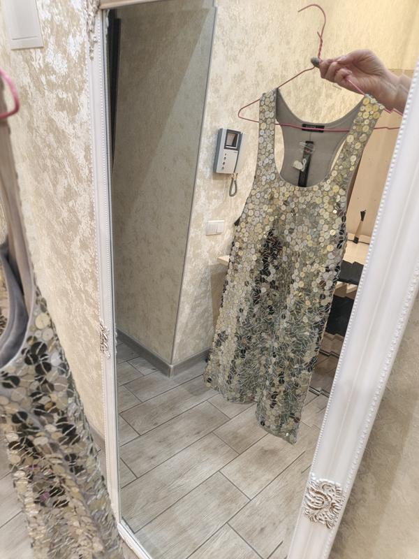 Длина 84 см, ог 80 см,ос 82 см. Размер М. Большие пайетки спинно- золотистые. Очень яркая и красивая. Нова. В таком платье вы будете звездой праздника!