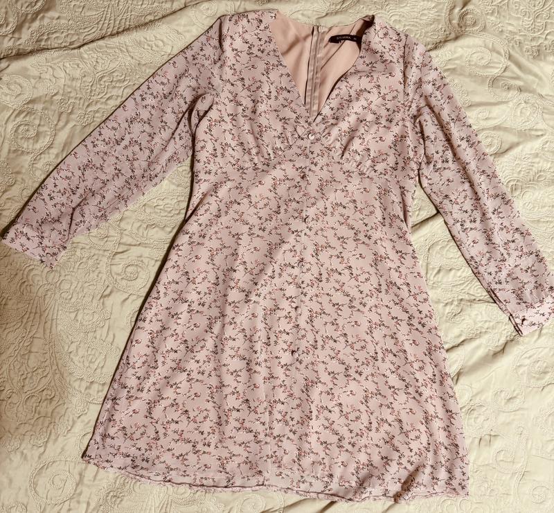 Плаття коротке, ніжного молочного кольору, розмір M, довжина- 87, груди- 44, бедра- 50, рукав- 59.