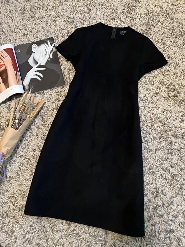 Щільна фактурна вовняна сукня від відомого бренду, бірка з розміром відсутня ( фото з інету, де зазначений склад), приблизно С-М, довжина 96 см, н/о в грудях 45-48 см, в талії 42-43см, в бедрах вільно до 53 см, є кармани, плечі 36 см