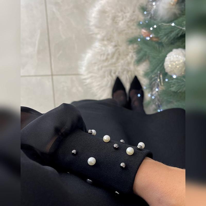 Платье Модель 1518 Розмір 42-46 Довжина 88см, рукав 61см Розмір 48-50 и 52-54 Довжина 97см, рукав 61см Тканина турецький креп-дайвинг, рукава легкий шифон Манжети прикрашені прибитими намистинками Колір чорний та червоний