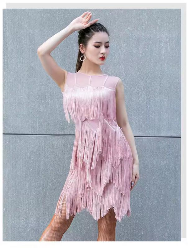 Сукня для латини. Цвет - розовая пудра. Рост 165-170см, длина 88см. Талия до 75см, ПО в груди - до 92см.. Платье тяжелое, не подпрыгивает. Бахрома. Сзади на спине сетка. Можно украсить камнями. Размер указан L, но она на S/M. Без нижнего белья.