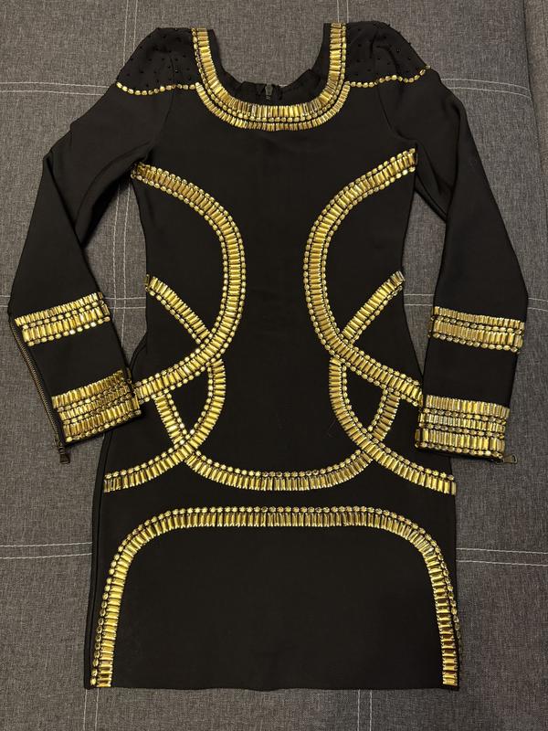 Вишукане чорне плаття обшите золотими стразами , розмір М вказано, можна і на S, заміри на фото. Плаття стане прикрасою Вашого вечора