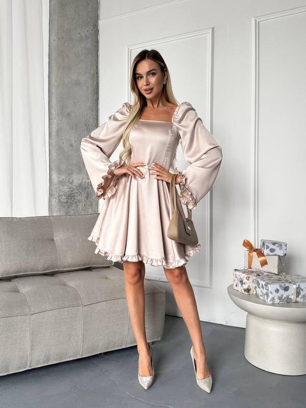 Невероятное платье арт.1708 - женственность, которая подчеркивает фигуру ✨ Элегантное платье из плотного двойного шелка премиального качества. Ткань не светится, красиво держит форму и выглядит дорого. Модель с романтичным квадратным вырезом, пышными рукавами и нежными воланами по краю - идеальный вариант для праздников, свиданий, фотосессий и особых событий. --- ✨ Достоинства модели: премиальный двойной шелк, плотный и качественный вырез-каре — тренд сезона легкий акцент на талии пышные рукава с воланами качественный крой, струнящий фигуру не просвечивается --- 📏 Размеры: 42–44 ОГ до 90 см ОТ 68 см ОС 150 см Длина платья: 90 см Рукав: 70 см 46–48 ОГ до 98 см ОТ 74 см ОС 160 см Длина платья: 92 см Рукав: 71 см --- Материал: двойной шелк Цвета: черный, шоколад, белый, бежевый, розовый На модели: 42–44, рост 169 см Замерено по изделию Идеальное платье, которое делает образ максимально женственным и элегантным.