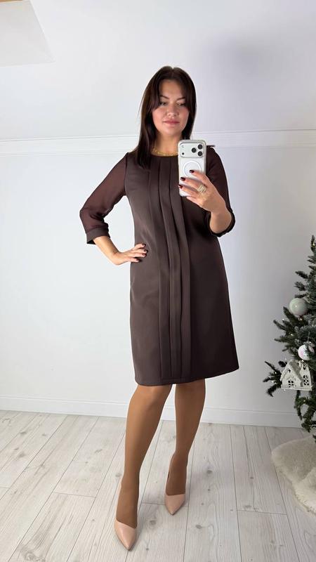 Платье Арт 2026/73 Тканина: креп костюмний, шифон Цвет: шоколадный Размер: 48-50, 52-54, 56-58 🏷️Цена: 880 грн Идеальное платье, которое скроет любые недостатки. Рукав 3/4 из шифона, впереди платья складки. Сзади сверху застегивается на пуговицу и петельку.