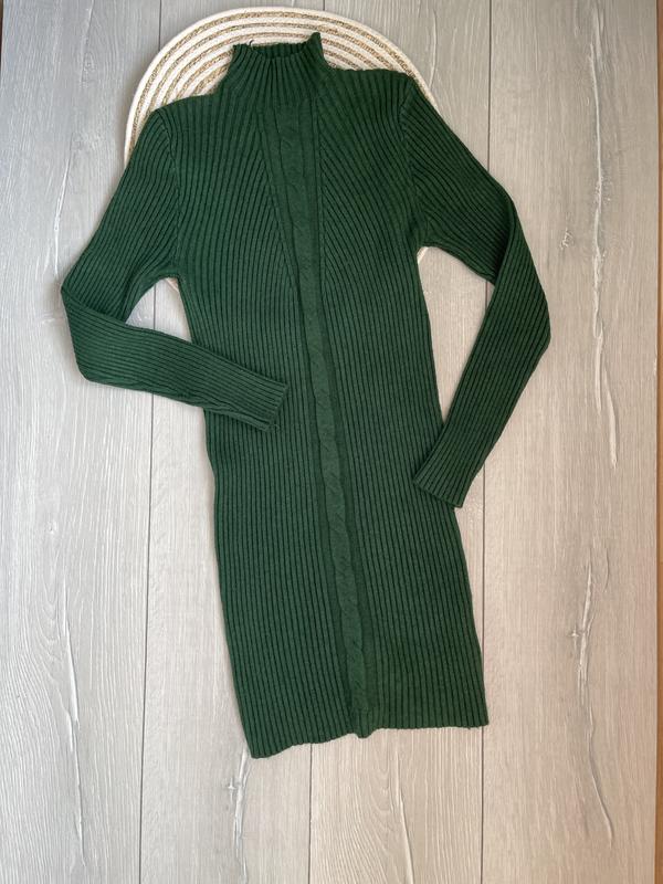 Тепла сукня, сукня туніка в рубчик, принт вʼязка. Розмір S-M. Заміри: довжина від плеча 77 см, рукав від плеча 56 см, ширина під руками 26 см. Тканина гарно тягнеться, дуже класно сідає по фігурі.