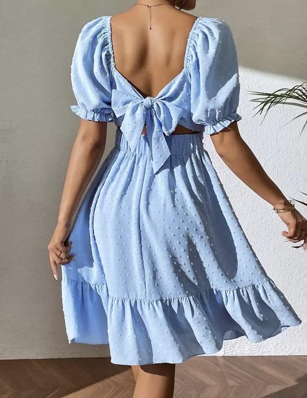 Пишна сукня в небесному кольорі, розмір М, ОГ 90-98см, регулюється завʼязками на спинці, талія широка резинка, тягнеться 79-80 см, стегна вільні, довжина 94 см