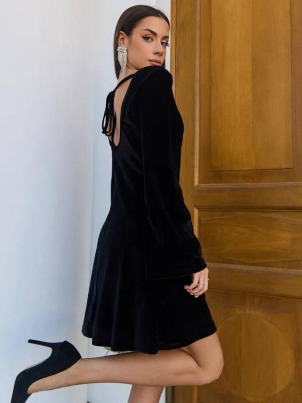 Стильна жіноча велюрова сукня з вирізом на спинці