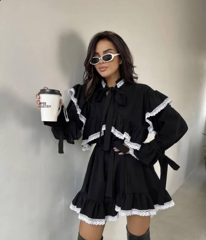 Сукня із кружевом🕊 Модель 500 ▫Тканина: софт+кружева ▫Розмірний ряд:42-52 ▫Колір: чорний Неймовірна сукня із кружевом та пояском, яка ідеально впишеться в твій гардероб 🕊 Мінімалістична та в той же час дуже нарядна💗 Саме те , що ти шукаєш🤤