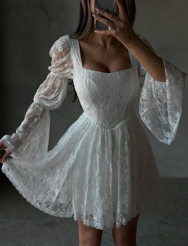 В наявності✔️ Сукня 🔘Мод 1148/129 🔘Розміри - 42-44, 46-48 🔘Кольори - молочний 🔘Тканина - гіпюр + підкладка 🔘Ціна 1080 грн Вишукана мереживна сукня з пишною спідницею та обʼємними рукавами. Ідеально підійде до будь-яких свят. Має підклад та не світиться. Приємна легка тканина. Збоку йде потайна змійка. 21