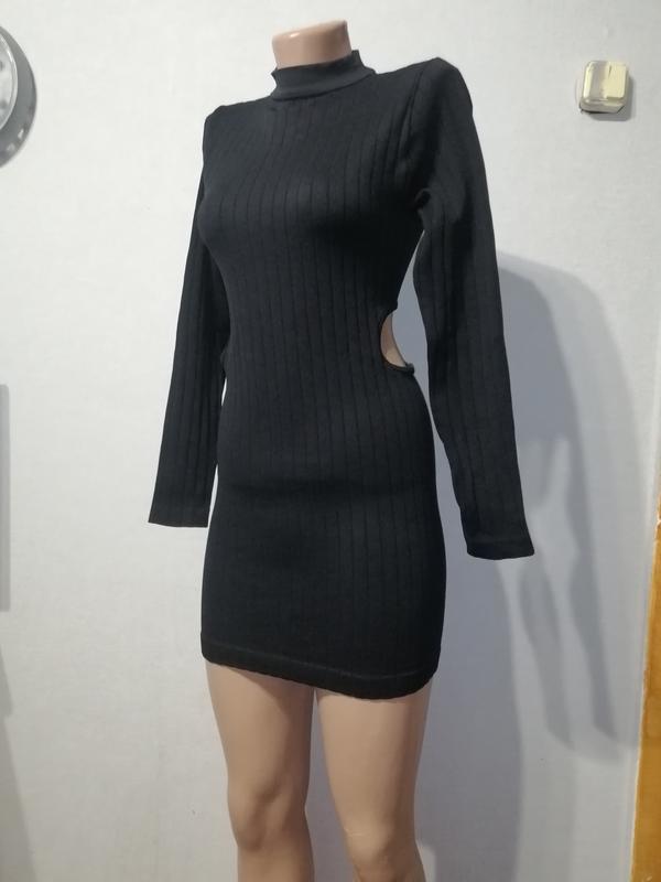 Чорна міні сукня в рубчик р. S/M (вказано K але маломірить). Довжина 75 см, ширина під руками 36 см, рукав від шиї 64 см. Нова.