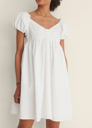 Шикарне, котонове плаття в білому кольорі від бренда Na-kd. Преміальна якість, натуральна тканина. Вільний фасон. Є потайна блискавка. На підкладці. Розмір 36 (s). Нове, з бирками. Заміри: на груди 84-88 см, довжина — 86 см.