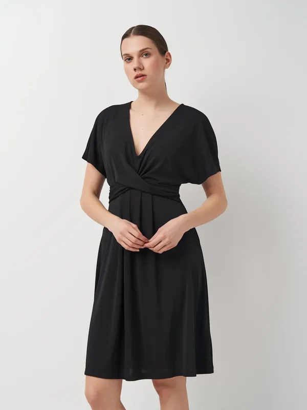🖤 Изысканное черное платье с акцентом на талии 🖤 Размер: 34 (также подойдет на 36) Материал: полиэстер Крой - с имитацией запаха С V-образным вырезом Нюанс — поврежденная бирка Замеры и дополнительные фото скина в приват 💌
