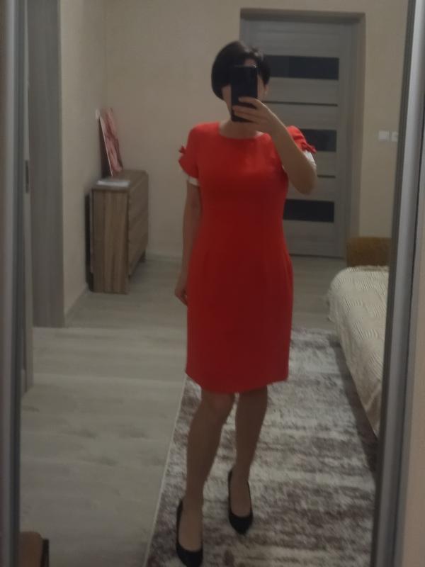 романтичное платье в коралловом цвете, имеет по заду замок и распорка с которой выглядит плиссеровка с бантиком аналогично так же как на рукавах замеры: полуобхват гуди 45 полу охват талии 37 полуобхват бедер 49 длина платья по переду от плеча 92