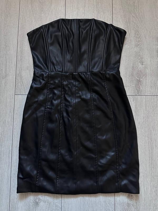Продам новое чёрное мини платье из искусственной кожи Длина 67 см талия под грудью 33 см