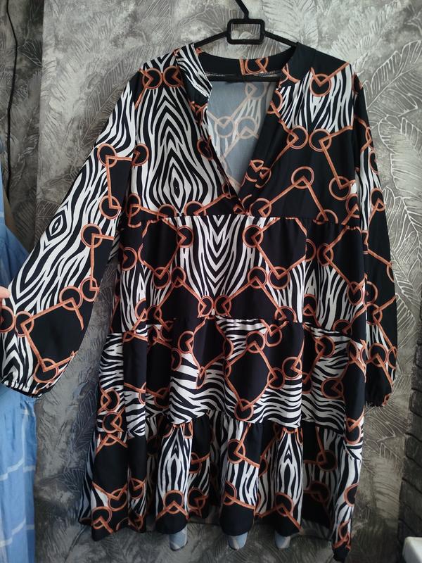 Легесенька сукня-туніка, 22 розмір по бірочці, з довгими вільними рукавчиками, вільненька до низу, тканина як шифон, не просвітрюється, не стрейчева Заміри: ог 134см, об 178см, довжина 97см
