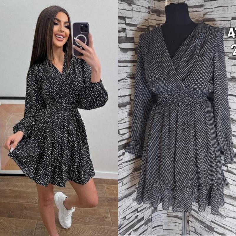 шифоновое платье на подкладке 42-44 размер черный/горох