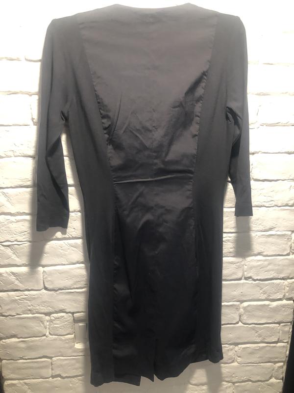 Платье серо-сизого цвета, за счет вставок трикотажа хорошо садится по фигуре