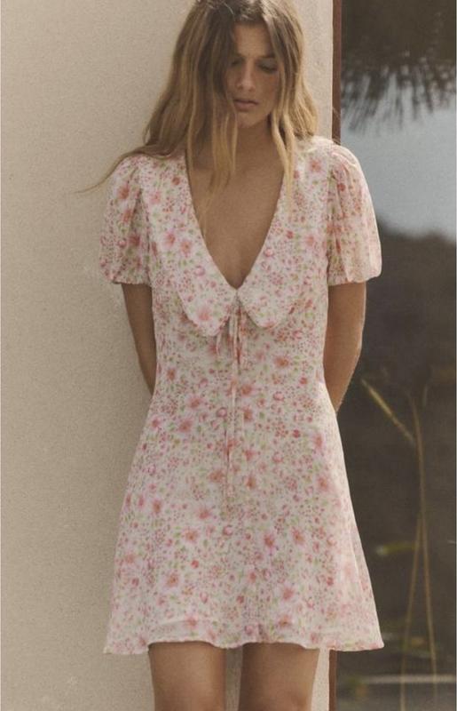 Легенька невагома коротка літня сукня Квіткова з V подібним вирізом і круглим коміром Zara Нова з біркою Літня колекція Розмір М Збоку прихована змійка