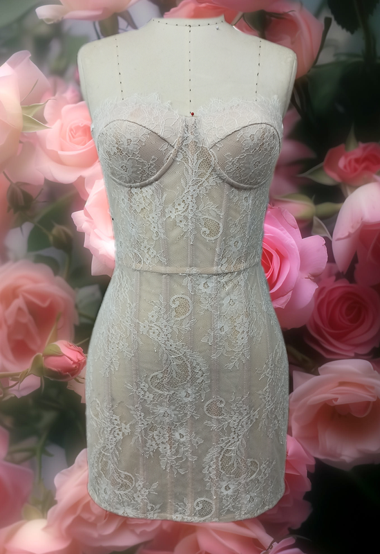 корсетное платье с молочным кружевом на мужской корсетной сетке