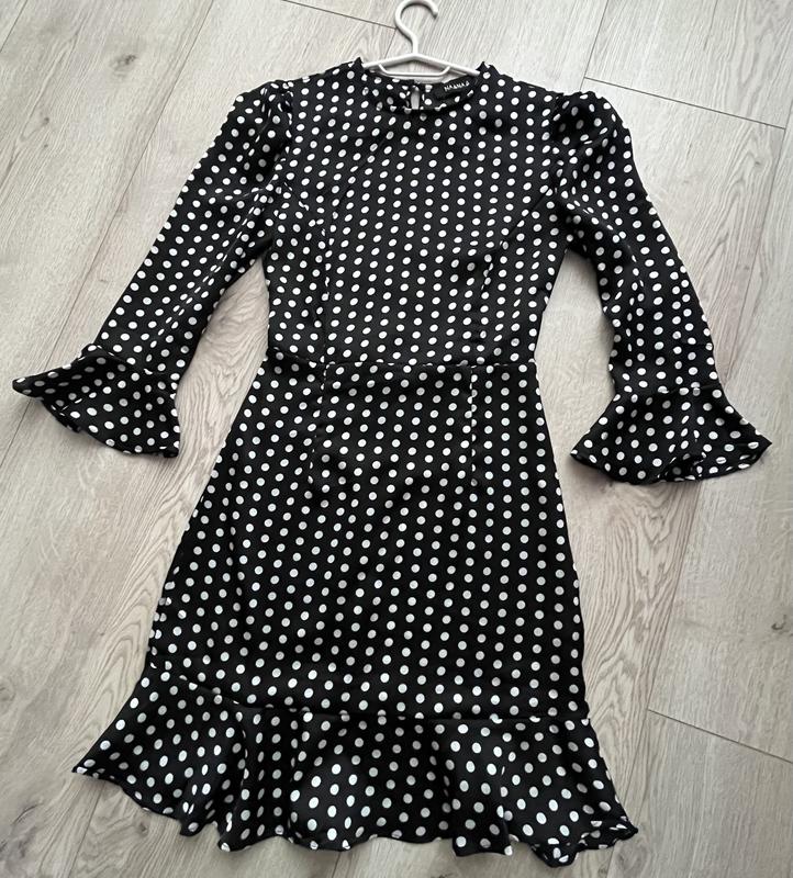 Чорна коктейльна сукня в горошок . Ідеальний варіант для вечірнього виходу та святкових подій .Параметри : ог 78 , талія 64 , стегна 85. Відкрита спина .