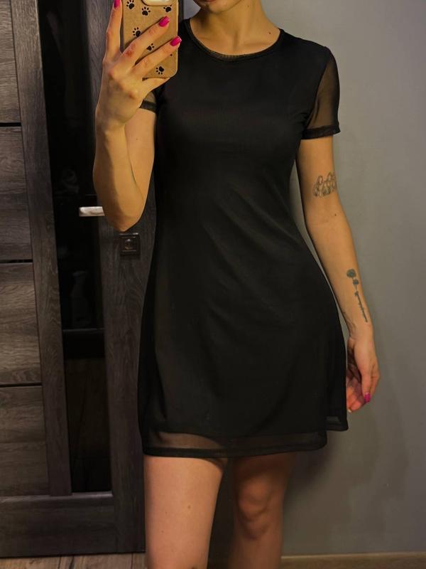 Замеры: Полуобъем груди: 40 см Полуобъем талии: 34 см Полуобъем бедер: 45 см (свободный крой, фасон трапеция) Длина изделия: 78 см Размер: На бірці XS За счет фасона подойдет также на S Особенности товара: Фасон трапеция Свободная посадка, не облегает бедра Полупрозрачные рукава из сетки Сетка по нижнему краю Легкая и комфортная Наличие дефектов Дефектов нет Описание: Стильное черное платье от бренда CROPP с аккуратными сетчатыми вставками. Свободный фасон трапеция обеспечивает комфортную посадку и красиво смотрится на фигуре. Минималистичный дизайн делает платье универсальным для ежедневной носки, прогулок или вечерних выходов. По запросу могу отправить видео в движении, чтобы было видно, как платье сидит на теле.